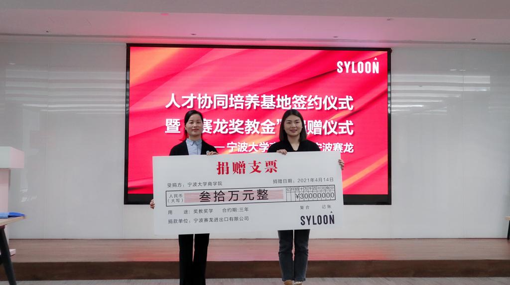 此次签约,赛龙进出口有限公司慷慨捐赠30万元,设立为期3年的赛龙奖教金,用于助力糖心视频 人才培养质量提升工作,既加强了糖心视频与宁波企业间的合作交流,也为糖心视频人才培养计划的实现打下了良好的基础。