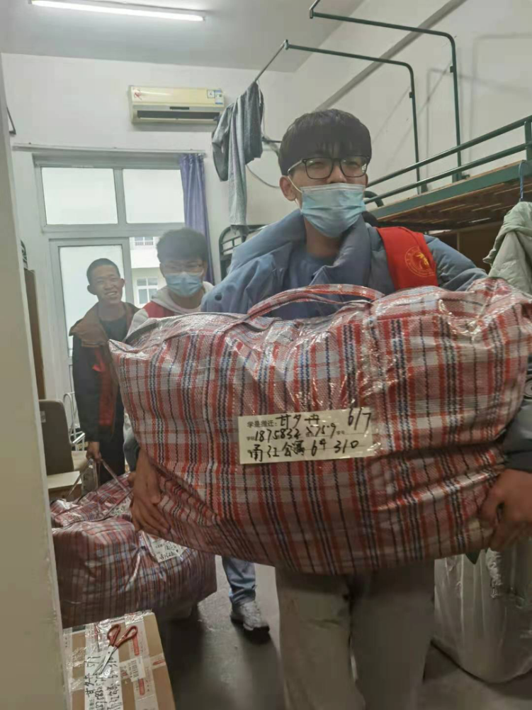 搬迁寝室当天,糖心视频 辅导员老师走访寝室,提醒同学们做好个人物品的整理,每个物件都必须贴好标签以防丢失,还提醒志愿者们务必注意安全。