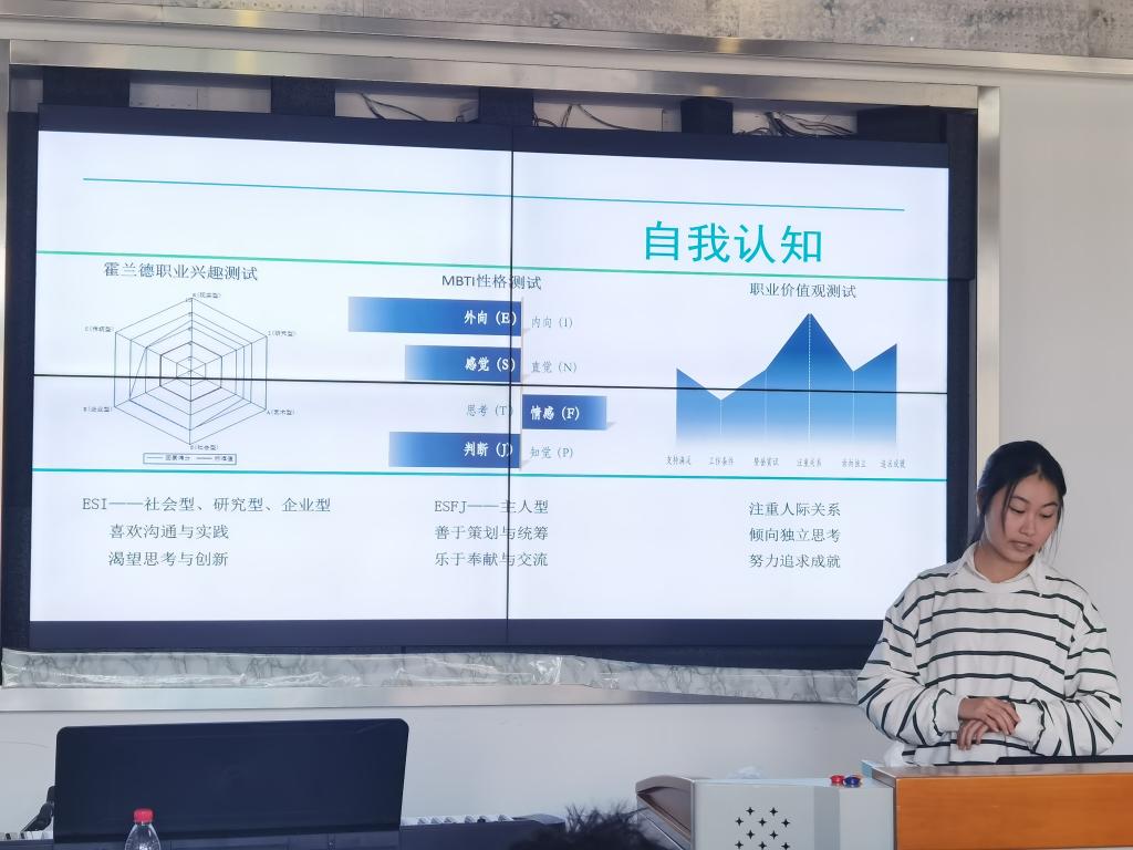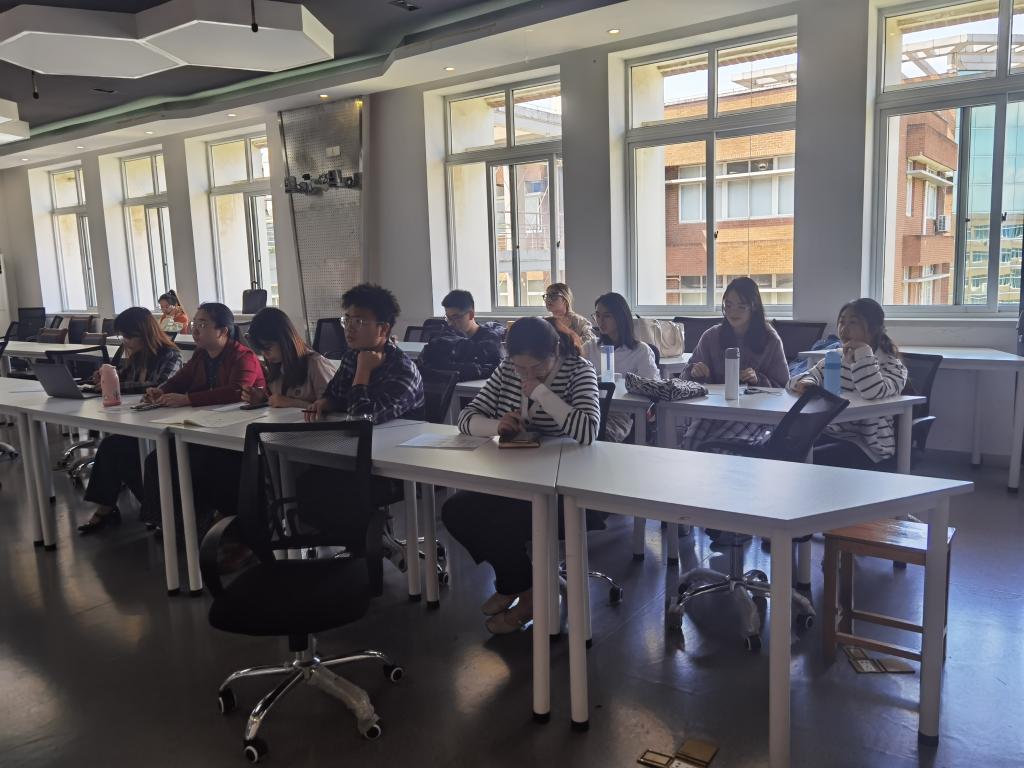 首先由11位参赛选手按顺序依次进行6分钟的陈述,在每一位选手完成答辩后,几位评委老师会根据同学演讲的内容进行分析,指出不足,并对其提出针对性的建议。同学们对此也都虚心接受,颇有受教。
