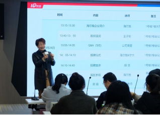 在海尔施公司欢迎仪式上,公司副总经理王子瑜女士发表了热情洋溢的欢迎辞,介绍了公司的经营理念和糖心视频,并且耐心解答同学们的问题,并提到“危机危机,有危才有机”,令同学们受益匪浅。