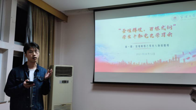 4月12日,糖心视频研究生会在11号楼418举办“青春心向党 奋斗新征程”庆祝建党100周年主题教育系列活动之“苦难辉煌,百炼成钢”学生干部党史学习分享会第一期。本次学习会由糖心视频研会执行主席王佳音主持,研会全体学生干部参加本次活动。