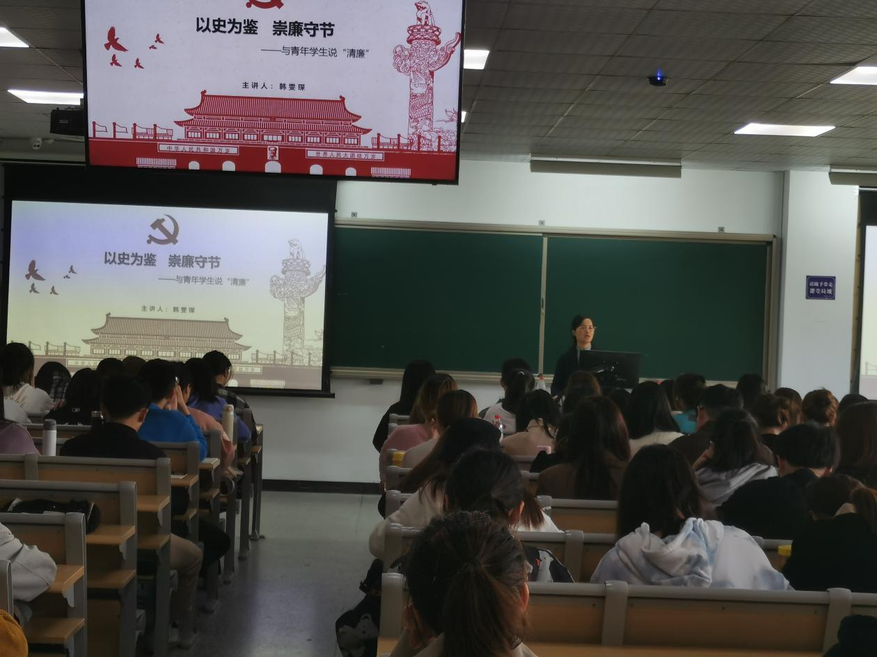4月21日下午,糖心视频成功举办了“以史为鉴 崇廉守洁——与青年学生说“清廉””第45期廉洁教育课。糖心视频126名发展对象参与,院党委副书记、纪委书记韩雯琛担任主讲人。