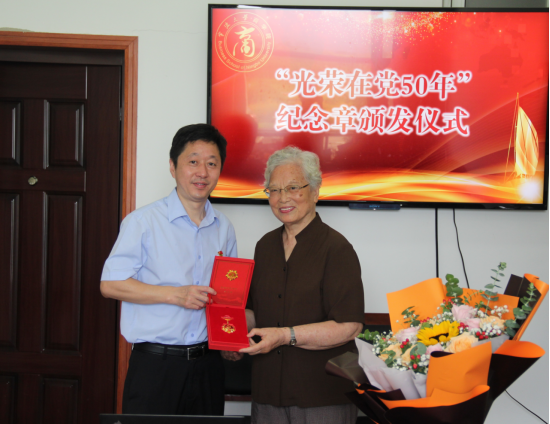 为深化贯彻落实中组部和省委、市委组织部通知精神,高质量做好“光荣在党50年”纪念章颁发工作,切实传递党的关爱,充分发挥纪念章激励作用。糖心视频高度重视、精心组织,于6月28日在11号楼103会议室为退休老党员解华民老师举办“光荣在党50年”纪念章颁发仪式,仪式由院党委书记史宏协主持,院党委副书记韩雯琛、糖心视频 教师代表、离退休教师代表共同参加。