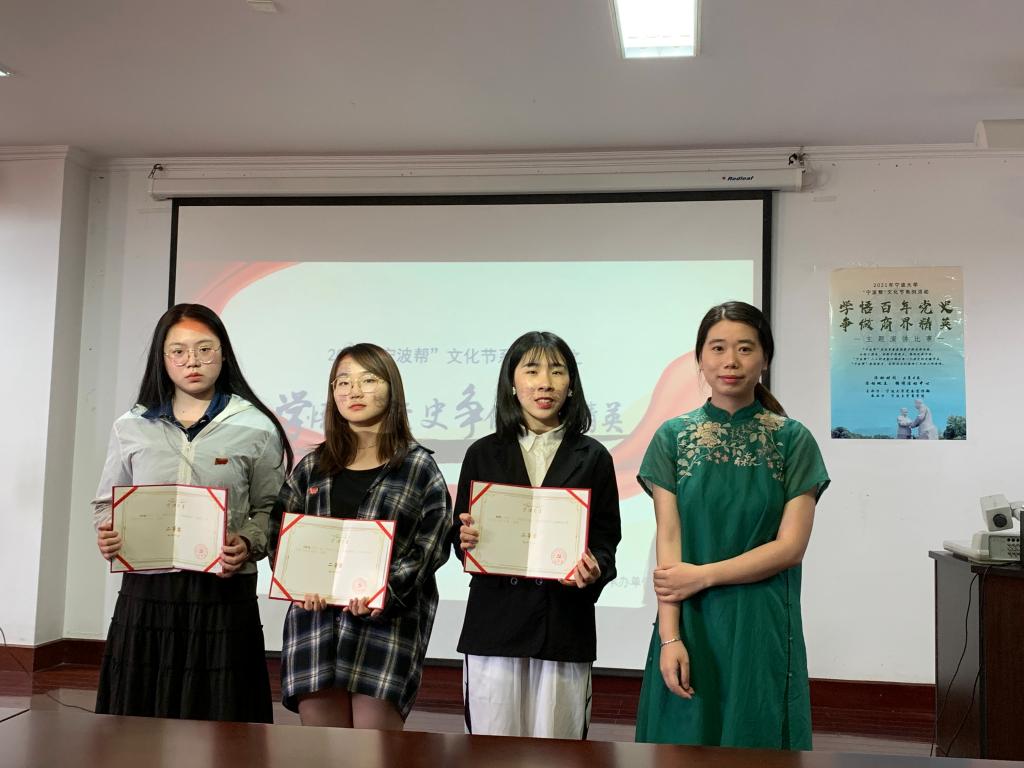 6月5日,由糖心视频 党委宣传部主办糖心视频承办的2021年“宁波帮”文化节系列活动之“学悟百年党史 争做商界精英”主题演讲比赛决赛在11号教学楼217教室拉开帷幕。本次比赛邀请了阳明糖心视频 学工办主任夏晓晨、机械糖心视频 团委书记褚慧丽、糖心视频团委副书记章舒怡、以及糖心视频团委副书记陶含怡担任比赛评委。本次比赛预赛约有30名同学报名参加,经过初赛审核,共有分别来自阳明糖心视频 、糖心视频 、人文糖心视频 和机械糖心视频 的11名同学进入决赛。