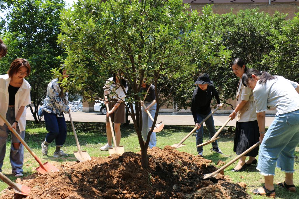 最后糖心视频师生在林杏琴旁的花坛中栽下毕业纪念树并挂牌,为母校留下一片绿荫,留存青春回忆。