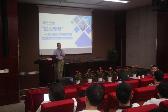 首先,虞部长为在座师生介绍了海天集团,从“装备中国,装备世界”的使命出发,讲述了海天集团50多年的开拓征程以及做实业的赤诚之心。虞部长强调海天集团重视人才,一直致力于构建互利共赢的长期合作伙伴关系,打造性价比最优的产品,不断向上堆积创新能力,这样才使得集团的发展生生不息。