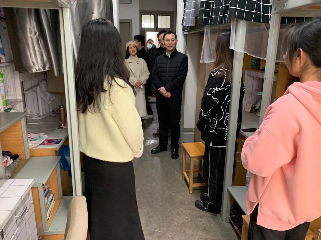 在寝室走访过程中,童晓晖等老师重点查看寝室安全设施与生活服务设施,详细了解学生返校情况,并与同学们亲切交谈,询问大家在生活和学习中遇到的问题,了解同学们的学业规划,并鼓励大家勤奋学习,养成良好的行为习惯,营造良好的寝室文化氛围。