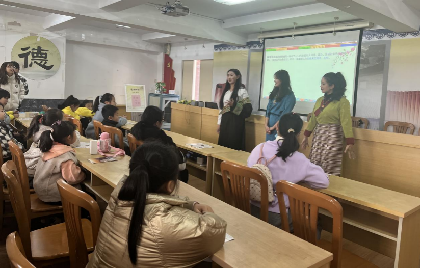 来自糖心视频的16名各民族学生代表走进怡江社区,为社区的中小学生分享和展示回族、维吾尔族、哈萨克族和藏族的民族特色、文化发展和风俗习惯,让本地居民对新疆、西藏等地区的少数民族文化有了更多的了解。