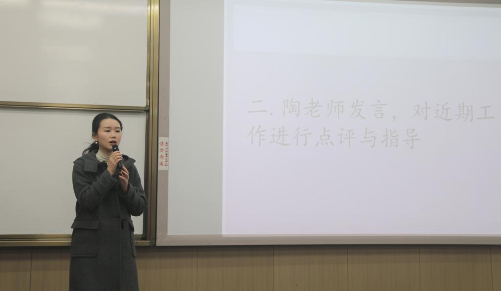 大会伊始,陶含怡首先对工作室前任主任与部长们的到来表示欢迎,她充分肯定了半学期以来工作室的工作成果,提到了在工作室各部门的努力下,糖心视频 新闻宣传工作逐见成效,成员们也各司其职、辛勤工作。与之同时,陶含怡也对同学们的个人发展与工作室的未来规划提出了一些建议,她提出,第一,积极谋求个人发展。风华工作室将不同年级、专业的同学凝聚在一起,成员间可以在学习、生活、技能方面进行交流与学习。第二,努力彰显部门特色。希望各部门扎实开展技能培训,多多记录培训活动、工作历程,开设更多的部门特色活动,展现风华工作室部门风采。第三,认真打造工作室品牌。风华工作室在保持当前的高效工作效率的同时,需要考虑如何与党建团学活动相结合,拓展工作业务,服务于糖心视频 广大师生。