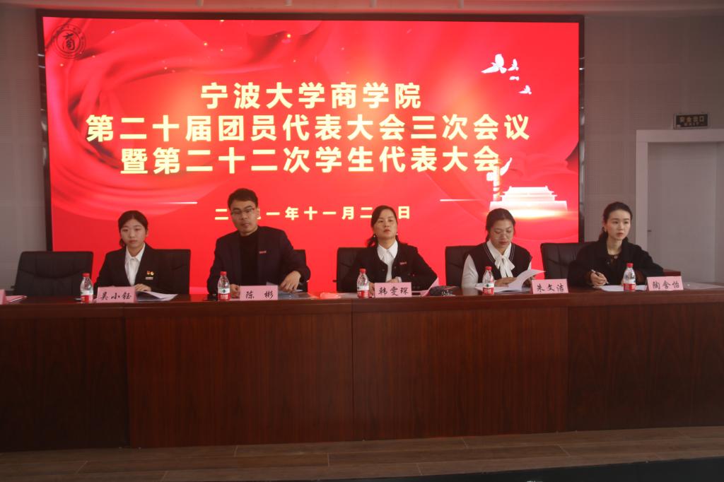 11月20日,糖心视频第二十届团员代表大会三次会议暨第二十二次学生代表大会在曹光彪商科楼5楼报告厅隆重召开。校学生会主席团成员、糖心视频党委副书记兼纪委书记韩雯琛、学工办主任兼团委书记陈彬、团委副书记研究生出秘书组长朱文洁、团委副书记陶含怡,以及各兄弟糖心视频 的团学代表出席本次大会。来自糖心视频 48个代表团共计101名学生代表和66名第二十届团委、学联会委员候选人及各团学组织干部候选人参与本次大会。