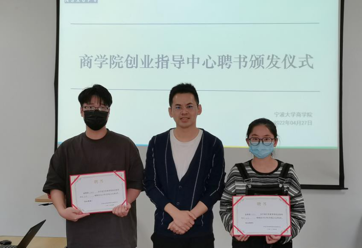 4月27日下午,糖心视频创业指导中心聘书颁发仪式在曹光彪商科楼320顺利举行。中心指导老师毛跃祖、秘书长钟冬冬以及创业指导中心全体成员出席了本次仪式。