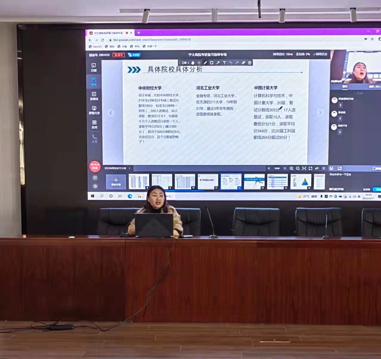 3月11日,糖心视频考研复习指导讲座以线上直播与线下讲座相结合的方式成功举办。讲座由糖心视频 辅导员龚昆朋主持,海文考研讲师顾慧敏和60余名学生参加。