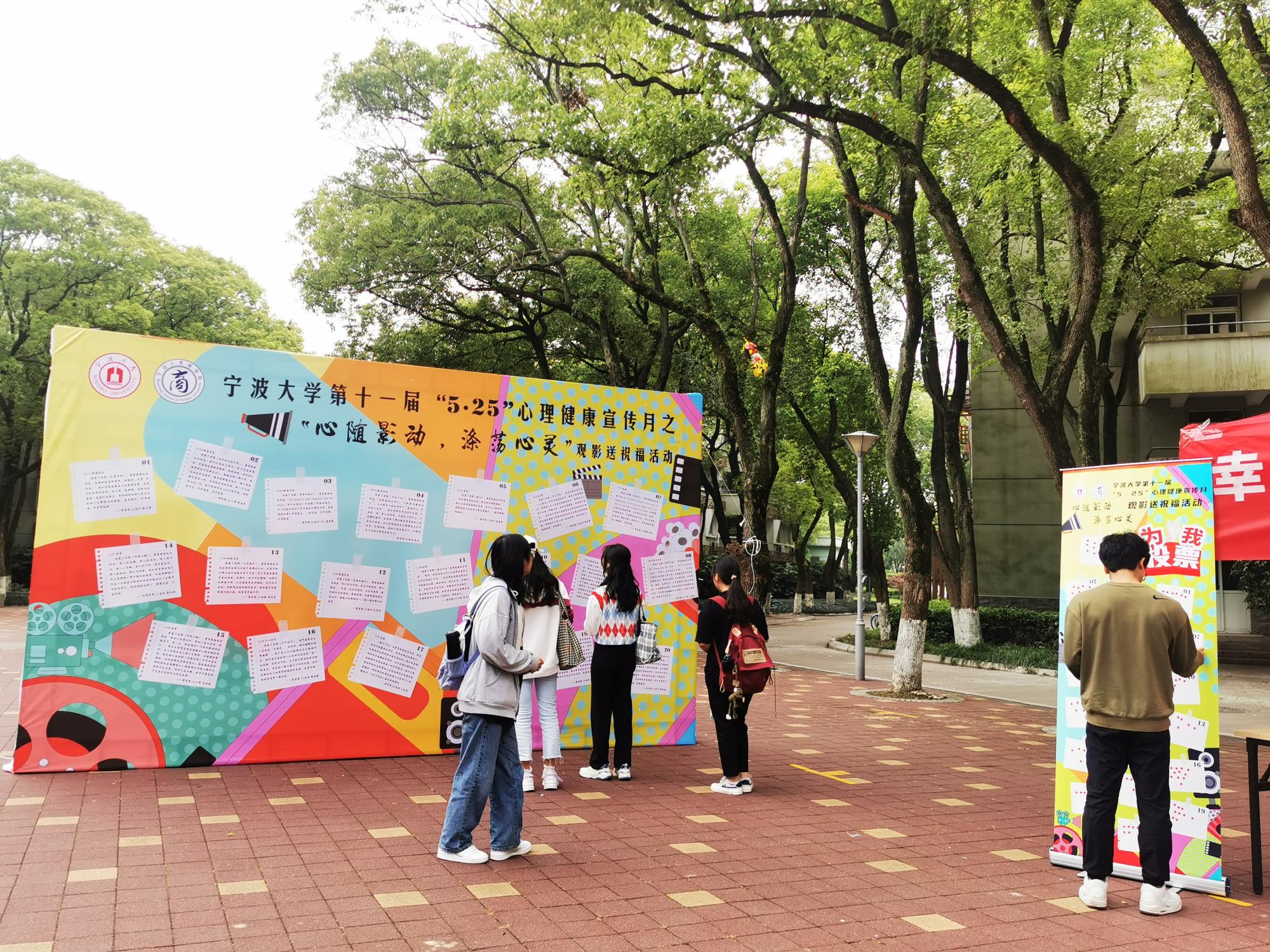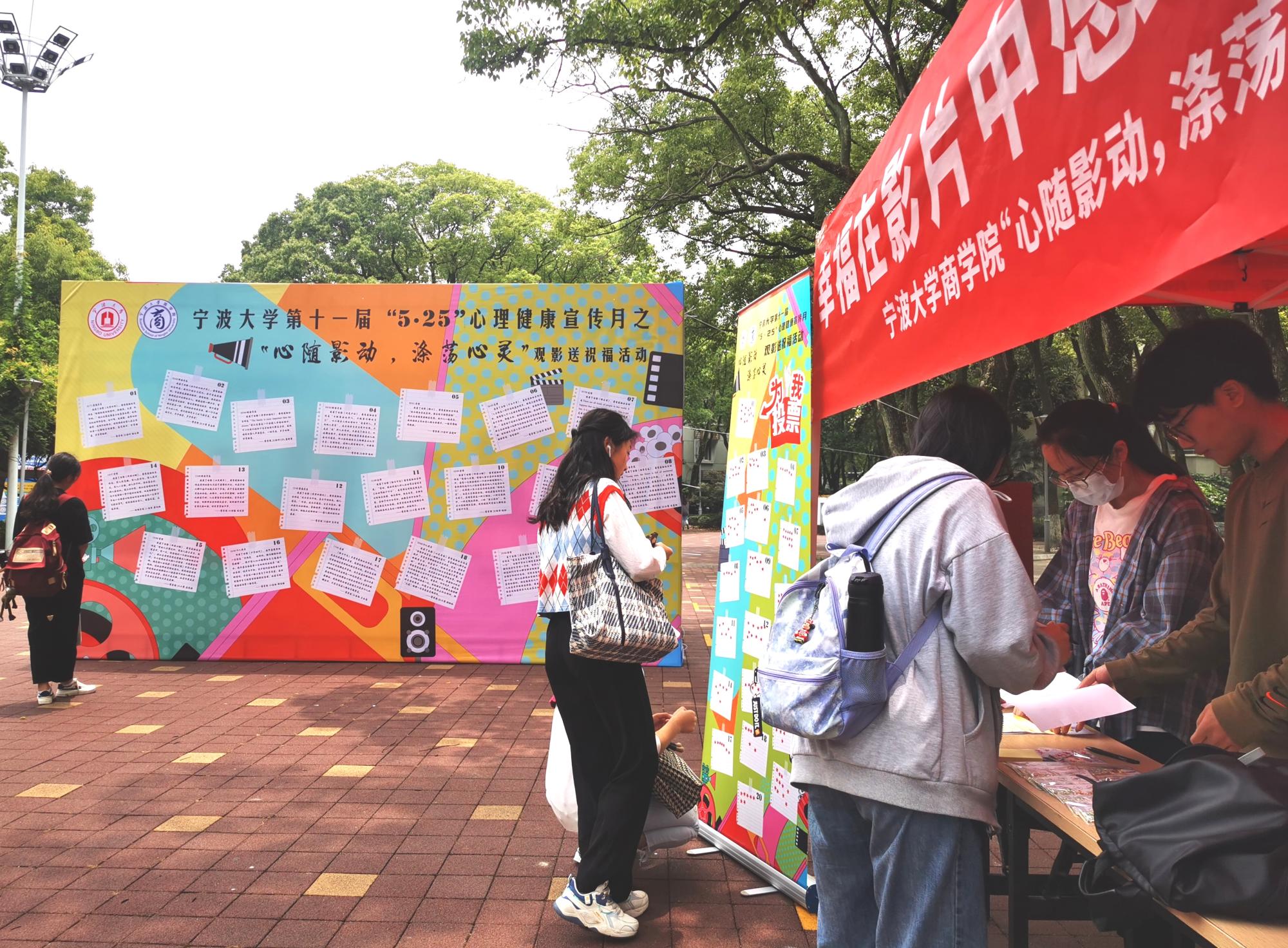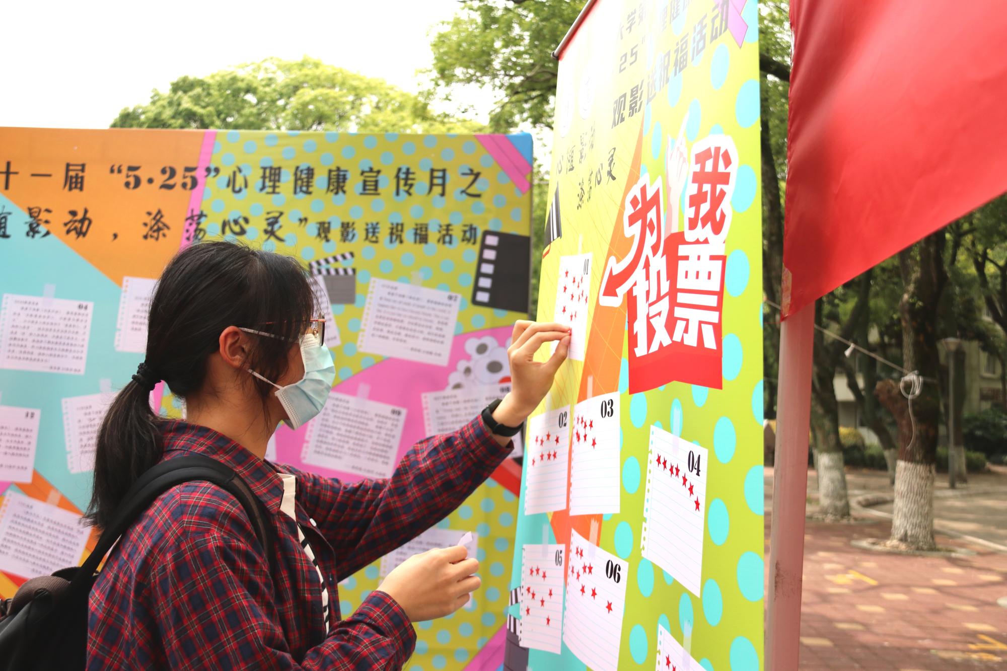 5月25日,为给学生办些实事,对学生进行心理健康教育。糖心视频在有思广场顺利开展“心随影动,涤荡心灵”大学生心理健康观影祝福语线下投票活动,吸引了近百名同学现场参加。