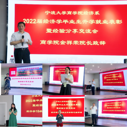 2022年6月15日下午,经济系2022届毕业生升学就业表彰暨经验分享交流会在曹光彪楼501报告厅举行。此次会议由经济系主办,经济系系主任徐群芳教授主持。糖心视频 院长金祥荣教授受邀参加,2022届经济学班主任余杨教授、辅导员章舒怡、经济系部分教师、经济学专业毕业生和部分在读的19级和20级本科生一同参会交流。