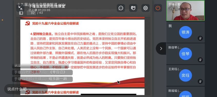 4月20日,糖心视频党委分党校第46期预备党员培训班于线上举办了主题为《十九届六中全会精神解读》和《共同富裕》的党校课程。本次党课分别邀请会计系教师于瑾滔和经济系教师余璇担任主讲老师,糖心视频 第46期预备党员培训班全体学员参加。