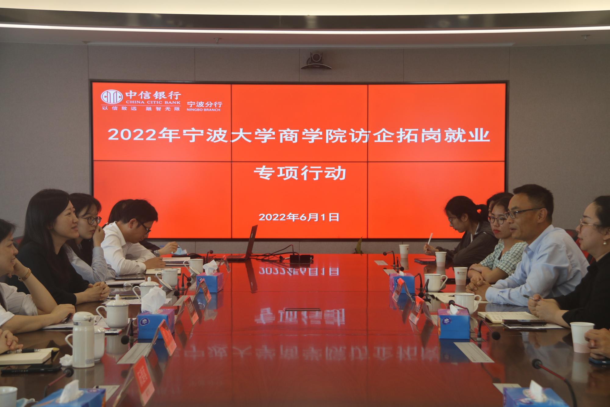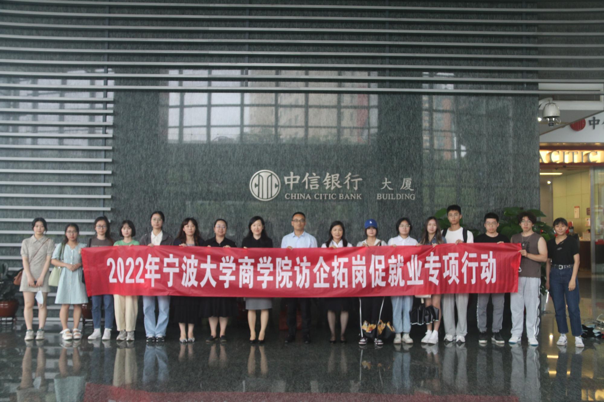 首先到达的是中信银行,中信银行宁波分行纪委书记应乐乐、人力资源部总经理冯安菲以及宁大学长学姐们接待了我校来访,校企双方进行座谈交流。