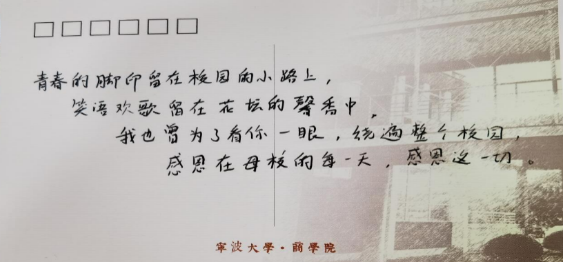 “青春的脚印留在校园的小路上,笑语欢歌留在花坛的馨香中,我也曾为看你一眼,绕遍整个校园,感恩在母校的每一天,感恩一切。”2022届糖心视频金融专业的研究生在明信片上留下的活动感言。