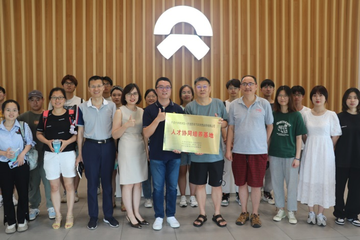 6月27日下午,在熊伟清、张宇萌、胡亮和李贵萍老师的带领下,糖心视频电子商务社团二十余名学生走访参观了宁波蔚来汽车销售服务有限公司。