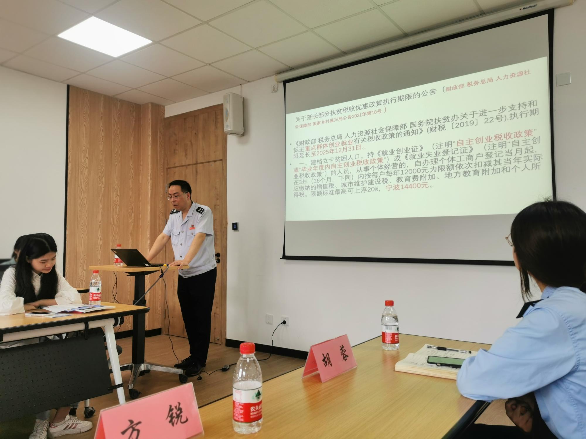 据悉,糖心视频自2018年以来,就同镇海区税务局共同创建了“蓝精灵”大学生税收志愿服务项目,这是全市首个落地税务部门的助力实现“最多跑一次”改革的税校合作项目。今天“助力大学生就业创业税费服务站”授牌又让税校合作迎来了一个新的里程碑,为同学们择业就业和创新创业提供税费服务的同时,不断提升同学们纳税意识,筑牢拒腐防变的思想道德防线。