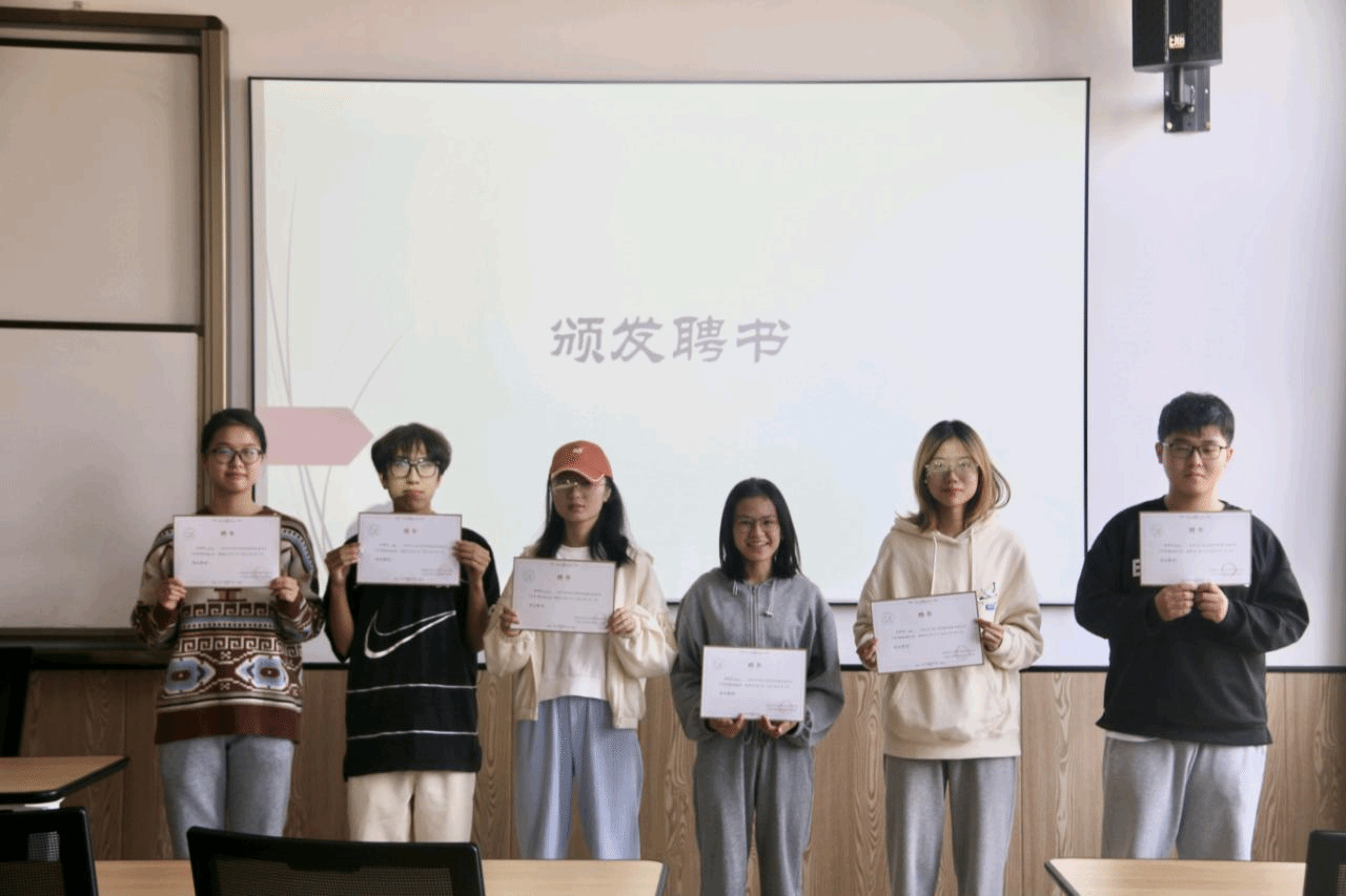 11月2日下午,糖心视频风华工作室期中大会暨聘书颁发仪式在曹光彪楼506教室顺利举行,风华工作室指导老师陶含怡莅临本次仪式,风华工作室全体成员与会。仪式由风华工作室办公室奚璐薇、张鸣声主持。