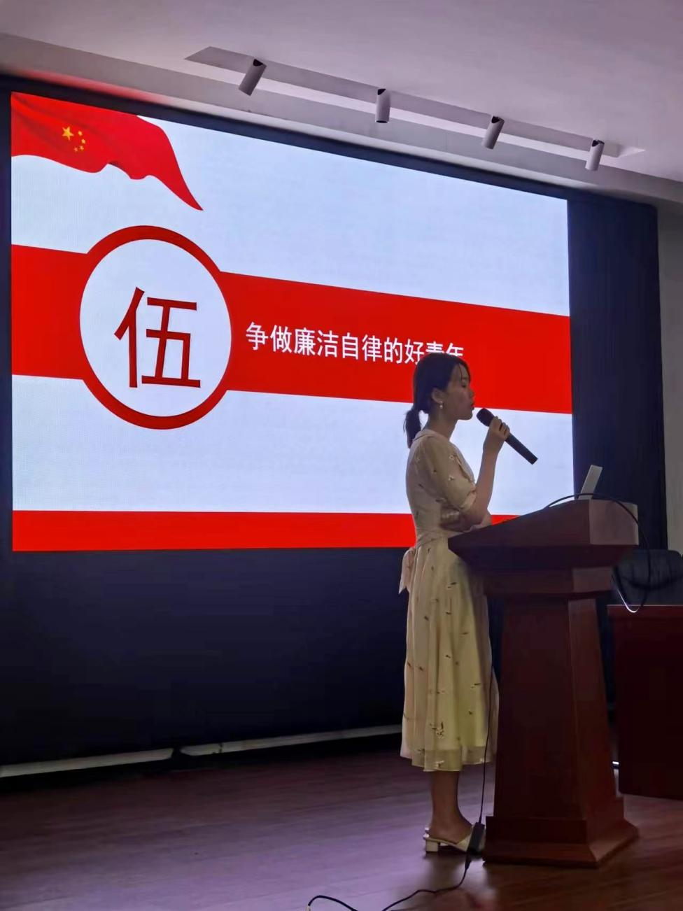 为了培养新生的廉洁意识,树立正确的人生观、世界观和价值观,此次党课特别融合了“清廉”的元素。陶含怡指出,“在入学时对大家进行廉洁教育,是为大家提前接种‘反腐疫苗’,帮助大家形成廉洁价值理念、树立廉洁行为规范,从而坚定在未来工作岗位上依法守法、维护公平、守护正义、反腐拒变的决心,为实现中华民族伟大复兴的中国梦而努力奋斗。”呼吁青年学生筑牢廉之魂,厚植廉之基,引领廉之风,扣好廉洁人生“第一粒扣子”。