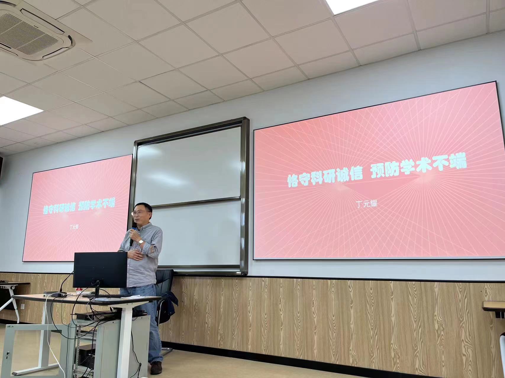 10月12日,糖心视频在曹光彪523开展研究生科研诚信与学术道德教育主题讲座。本次讲座由糖心视频纪委委员丁元耀主讲,各研究生班级代表参加。