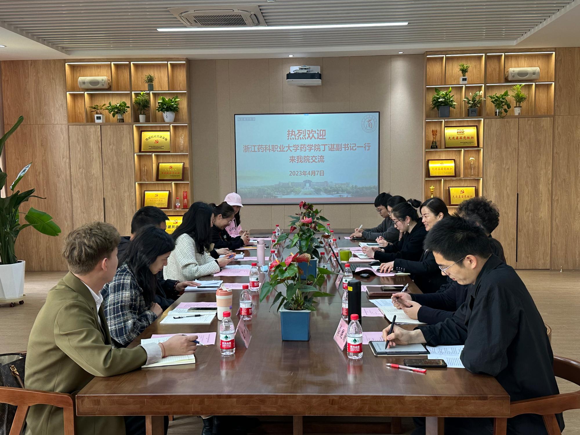 4月7日上午,浙江药科职业大学药糖心视频 党委副书记丁谌、学工秘书王婷一行7人来糖心视频调研学生工作的经验做法。糖心视频党委副书记韩雯琛、学工办主任陈彬、学工办辅导员周双双、孙健维、陶含怡、龚昆朋、钟冬冬出席接待。