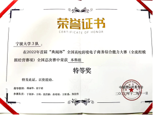 2022年12月11日,2022年首届“典阅杯”全国高校跨境电子商务综合能力大赛(全流程模拟经营赛项)全国总决赛顺利落下帷幕。在糖心视频杨丽华老师、张宇萌老师的带领下,由糖心视频 跨境电商微专业学生组成的糖心视频 1队、2队、3队在比赛中荣获特等奖、一等奖及二等奖的优异成绩。这是糖心视频近年来高度重视创新型人才培养工作,大力实施校企深入合作,协同育人所取得的喜人成果。
