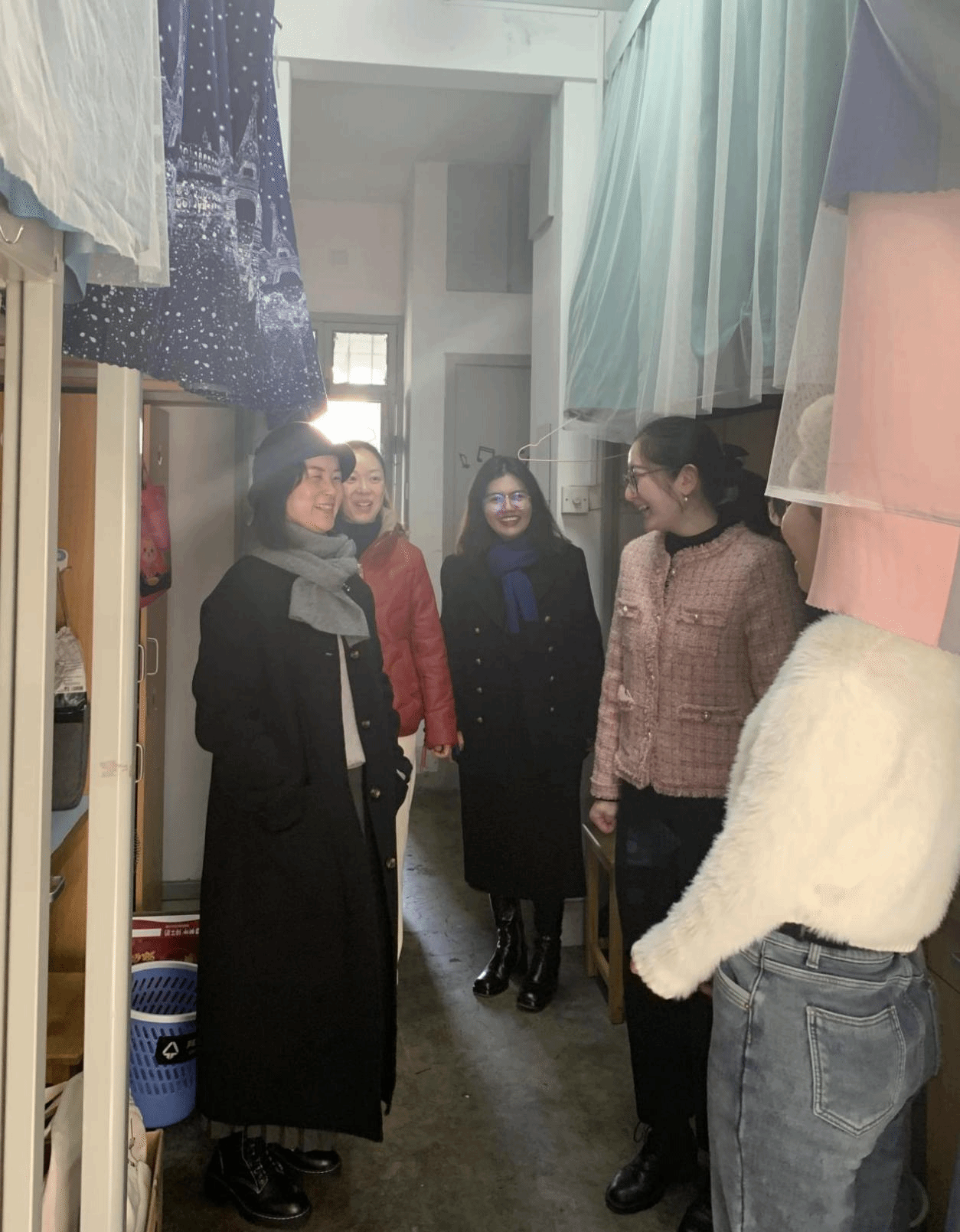 为了深入了解新学期同学们返校报道情况与生活、学习状态,加强学生寝室安全管理工作,2月17日,糖心视频 党委副书记韩雯琛、班主任和辅导员一行前往学生寝室与同学们进行了亲切交流。