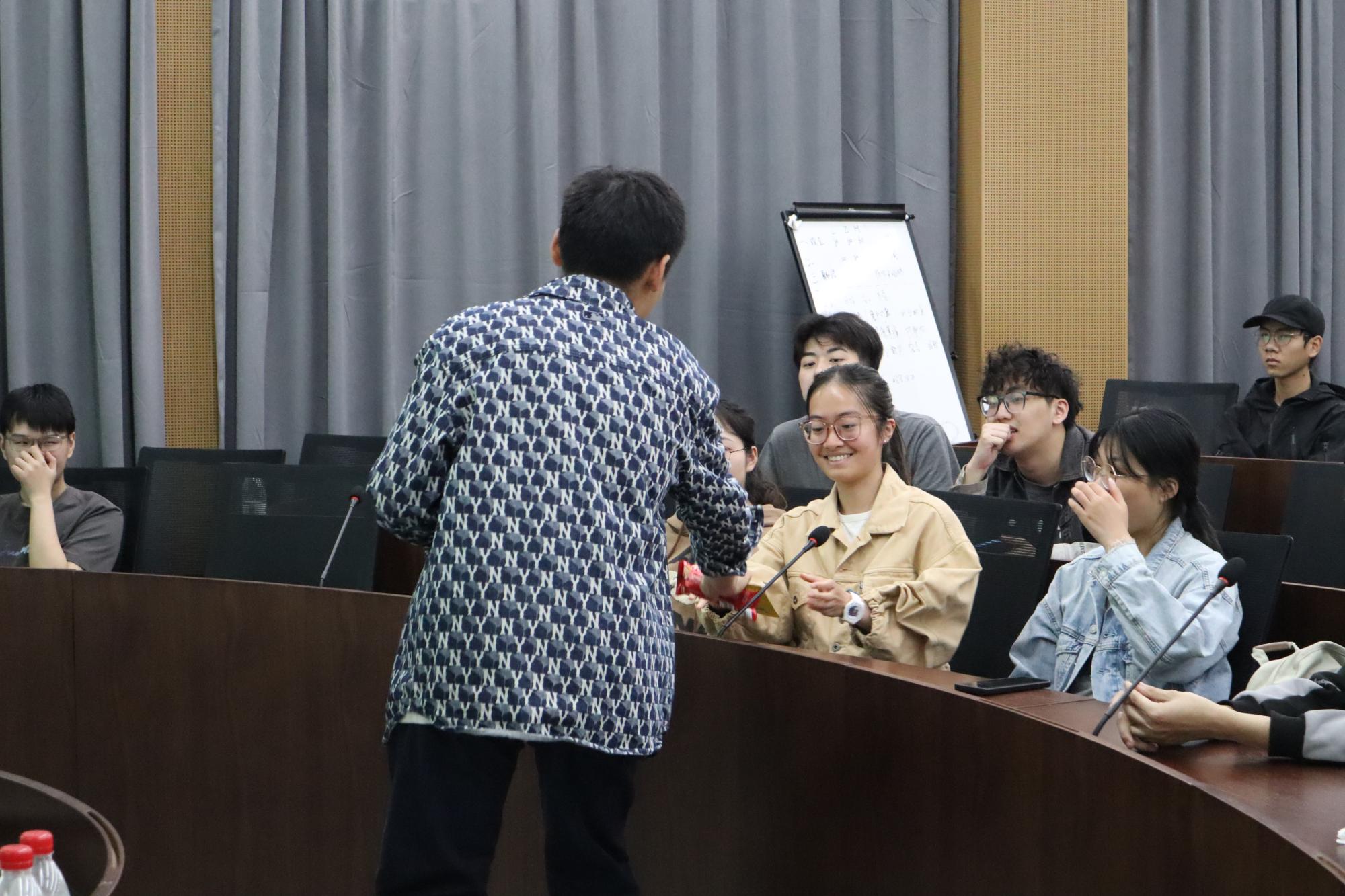 讲座第二部分以“飞越‘甬疆’,共画同心圆:探寻民政团结答案”为主题,由“飞越”甬疆实践宣讲团队长戴秉邦讲述。戴秉邦以“大美新疆”宣传片导入,用有奖竞答援疆知识活动充分调动了现场的氛围和激发了同学们的兴趣。