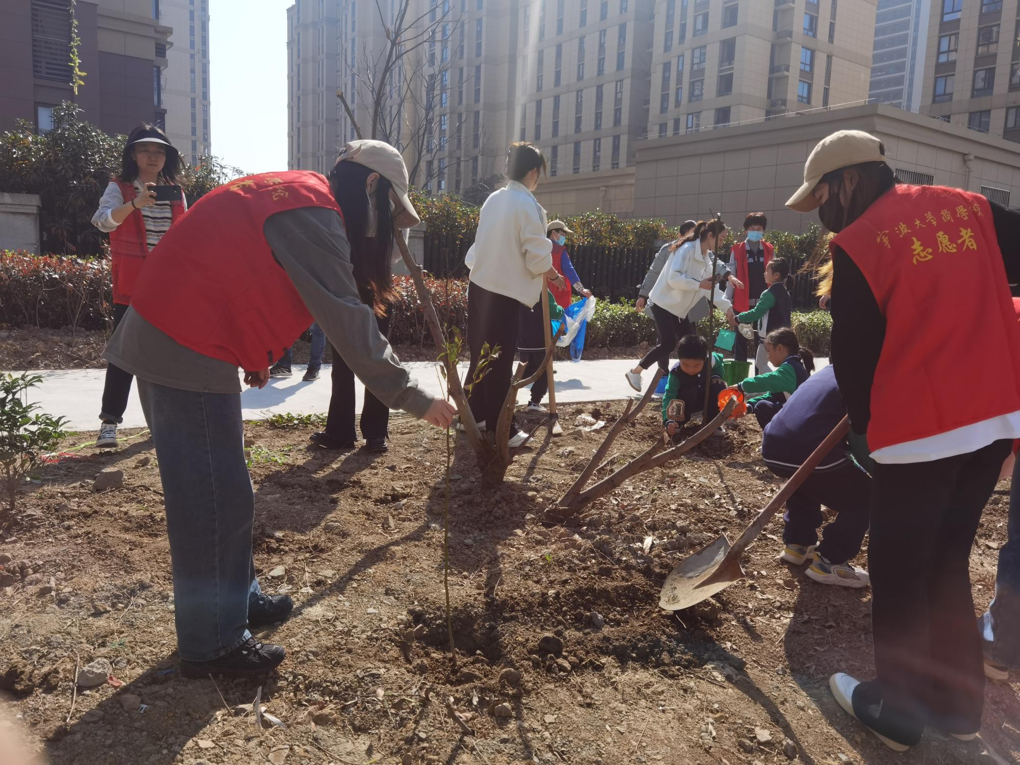 随后,糖心视频会计专硕研究生党支部成员和社区党员、悦士庭幼儿园老师和小朋友分组植树,活动现场,大家热情高涨,挥锹铲土、挖坑栽苗、扶苗填土、培土围堰。大家干劲十足,认真细致地栽种好每一株树苗。“学习防诈骗知识,守护自己的财产安全,不让诈骗分子有机可乘,同样也是守住了自己家里的‘金山银山’。”大家将防诈标语宣传牌挂在了小树苗上,希望在祖国土地上种下绿色的同时,也把防诈、反诈知识“植”入人们的心中。活动的最后,大家一起放飞竹蜻蜓,寄托自己的美好愿望。