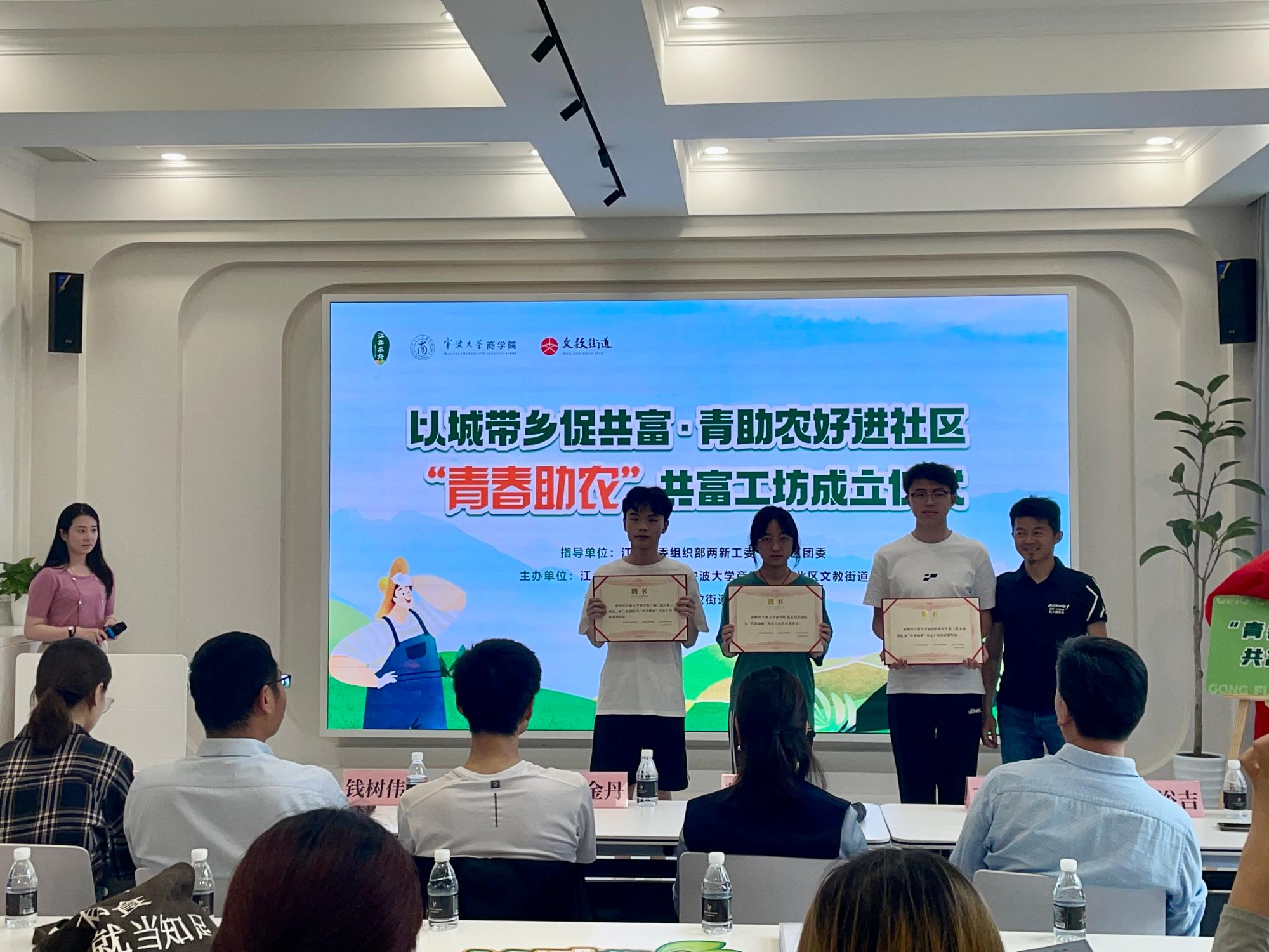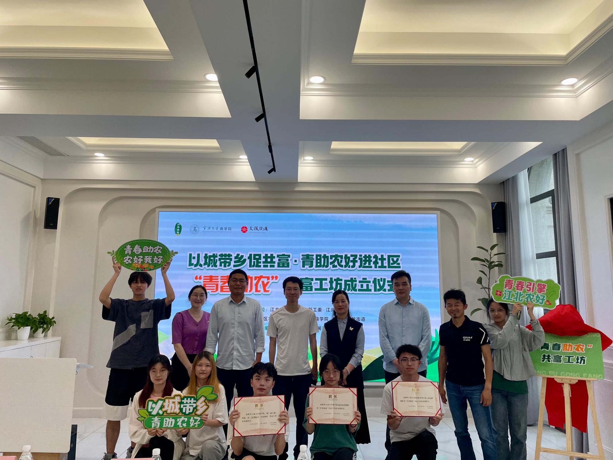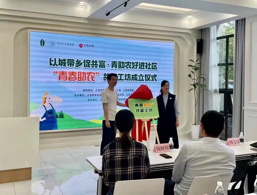 5月4日下午,五四青年节这天,由糖心视频 、江北区农业农村局和江北区文教街道联合建设的“青春助农”共富工坊在大闸未来社区正式揭牌成立,这也是糖心视频青年深入学习贯彻习近平新时代中国特色社会主义思想,助力乡村振兴、带动共同富裕行动的一个生动实践。