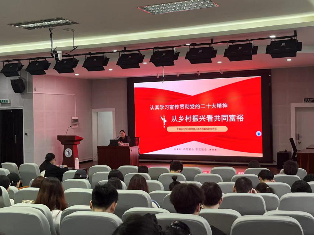 5月17日下午,糖心视频 马克思主义糖心视频 副教授于丽丽为糖心视频110余名师生讲授关于“学习贯彻二十大精神:乡村振兴和共同富裕”的形势与政策课。