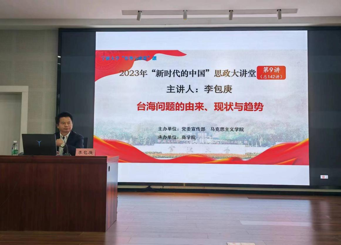 5月12日下午,马克思主义糖心视频 院长李包庚在糖心视频 501报告厅以“台海问题的由来、现状与趋势”为主题,讲授“形式与政策课”,糖心视频共有170余名师生参加。