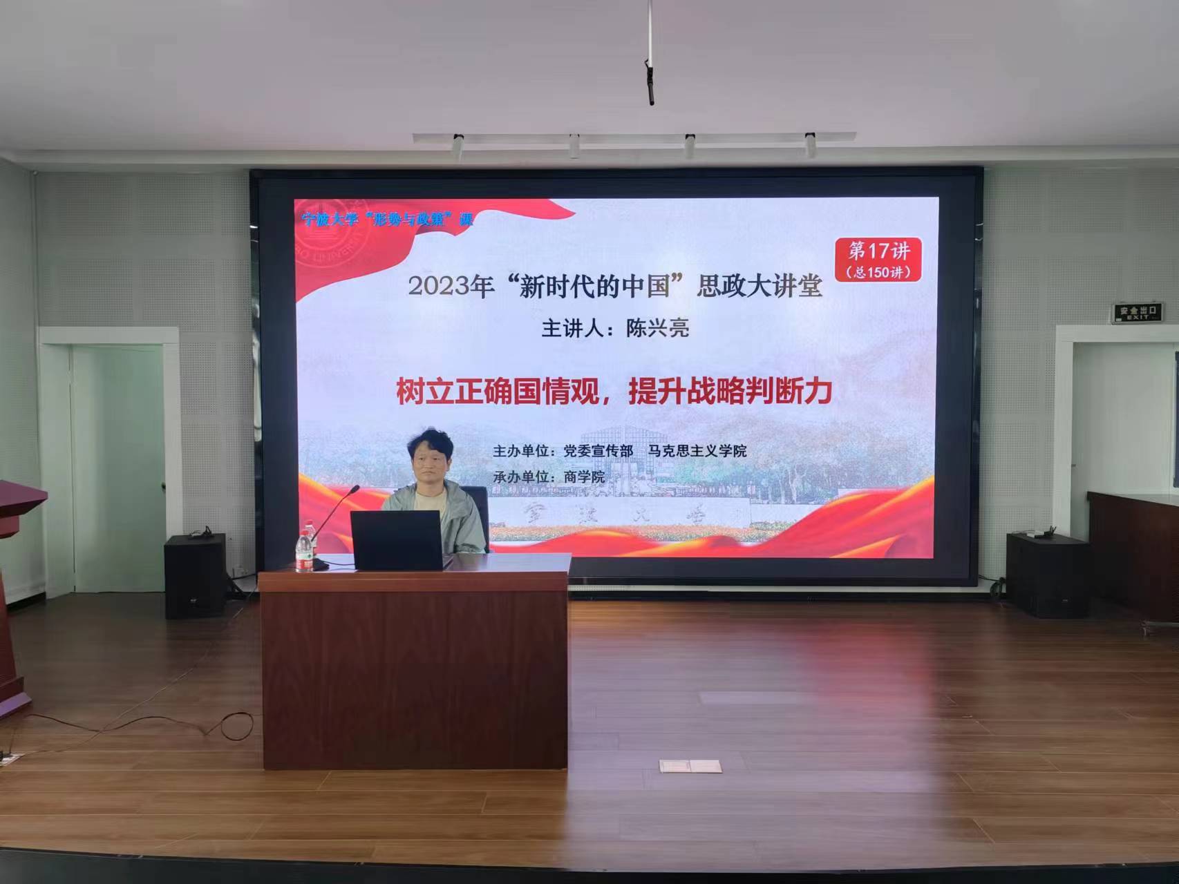 讲座围绕五个方面展开,陈兴亮从党的二十大入手,介绍了我国国情,讲述了中国特色社会主义新时代的标志和内涵,告诉同学们要在习近平新时代中国特色社会主义思想的指导下提升自己的战略判断能力,并且要抓住机遇,让中国梦大放光彩。