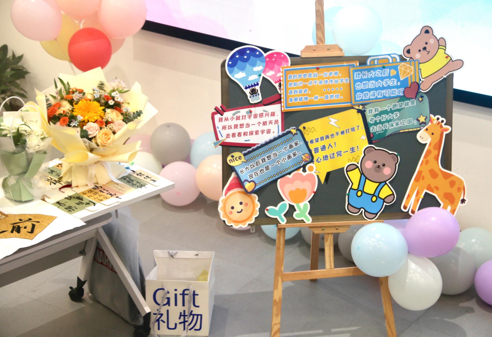 此前,贵州省晴隆县第六小学五(4)班的小朋友们按照宁大支教志愿者的要求,以信件的方式写下了“我的梦想”是什么,他们的梦想有教师、士兵、画家、宇航员……可谓丰富多彩。活动当天,支教团志愿者们通过云端连线贵州小朋友们,邀请大学生对他们进行“梦想导航”,鼓励他们好好学习,有机会要走出去,看看外面的世界。青年团员代表龚震和郭佩其还带领师生齐唱《孤勇者》,向未来挥手。现场放飞了孩子们的“微心愿”,由大学生一一进行认领并在后期实现,活动现场气氛热烈。