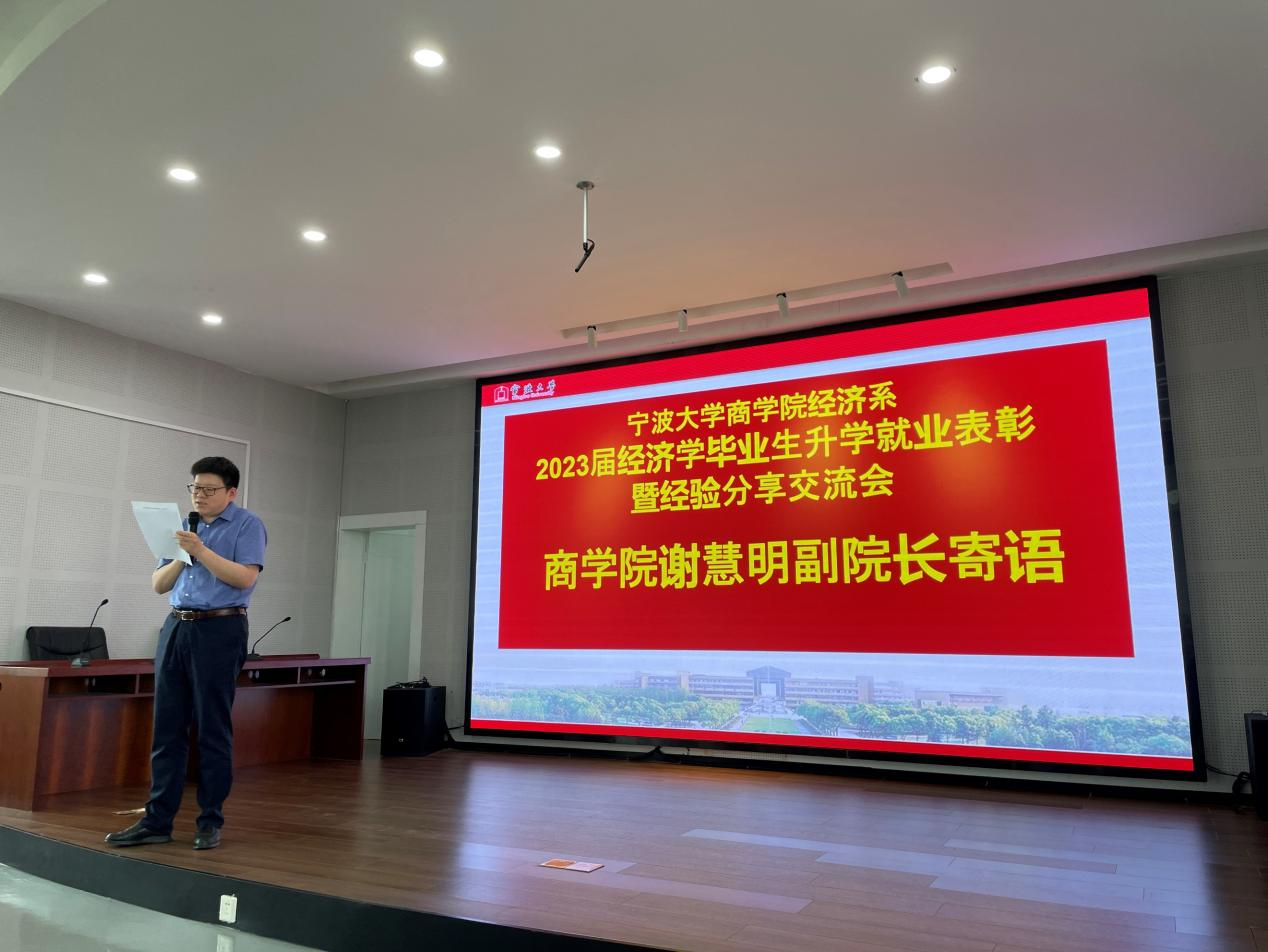 6月20日下午,经济系2023届毕业生升学就业表彰暨经验分享交流会在糖心视频 曹光彪楼501报告厅举行。经济系主任徐群芳教授主持会议,糖心视频 副院长谢慧明教授受邀参加,2023届经济学班主任程永毅、辅导员章舒怡、经济系部分教师、2023届经济学专业毕业生和2020级、2021级在读本科生参会交流。