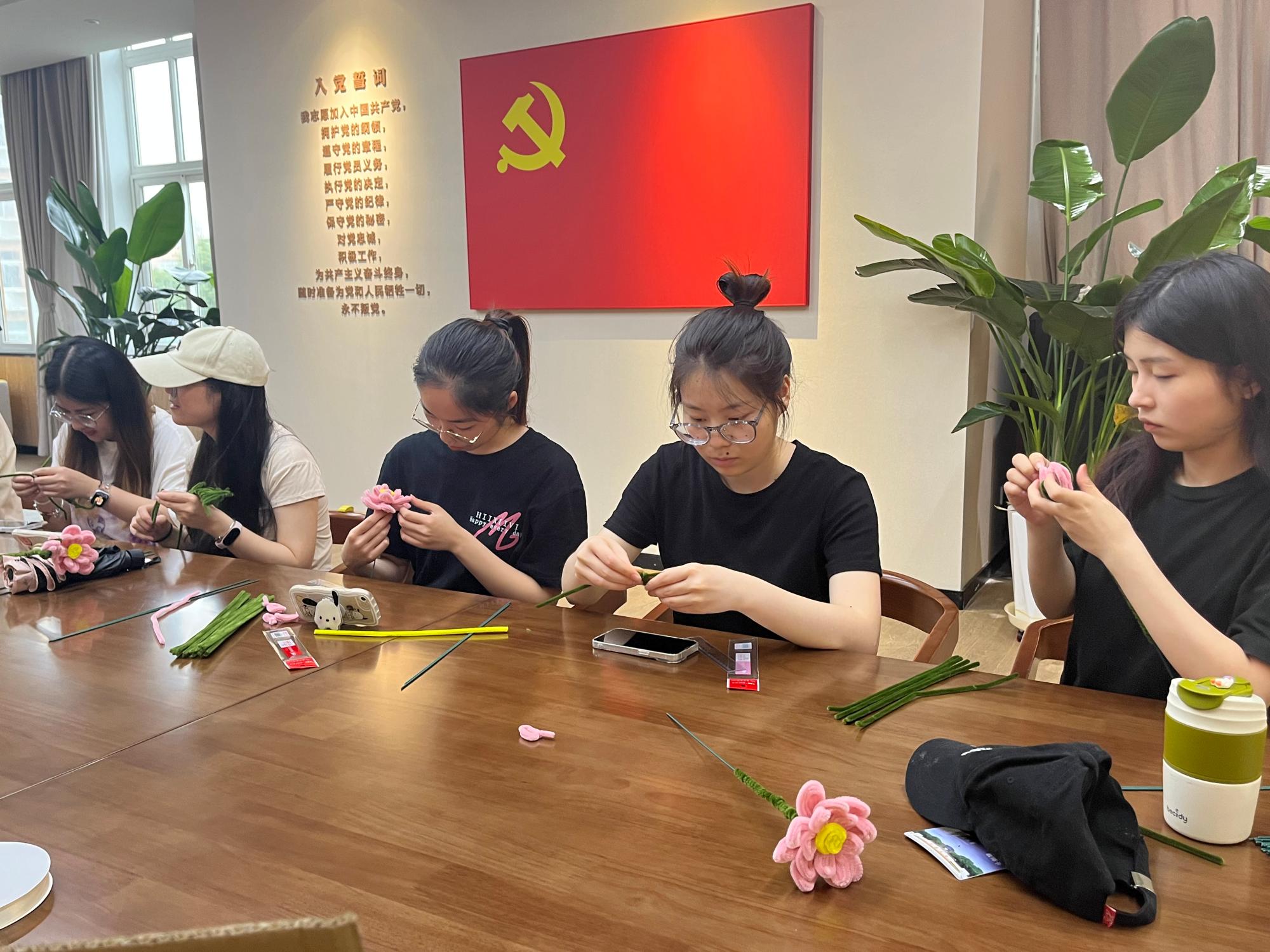 随后,支部成员开始制作清廉荷花,工作人员给同学们分发本次手工制品的材料--扭扭棒,并详细讲解扭扭棒莲花的制作步骤以及注意事项。