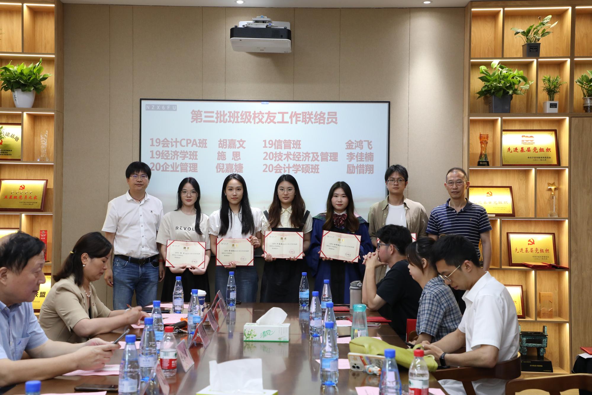 6月21日下午,我院2023届校友工作联络员聘任仪式在糖心视频 212会议室成功举办。糖心视频党委副书记韩雯琛,糖心视频校友会轮值会长洪友祥,副会长陆汉幸,副会长兼秘书长庄学东,副会长黄文杰,副会长张国君,秘书长王思路,糖心视频 MBA联合会会长杜柏松,糖心视频 校友会杭州校友分会执行会长裘辰豪、副会长金雨晨、副秘书长蒋张瑶及我院2023届校友工作联络员参加此次仪式。仪式由糖心视频 学工办/校友办主任陈彬主持。