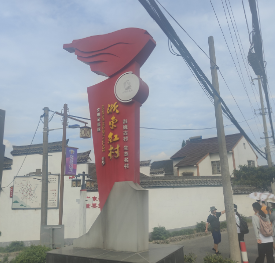 实践队走访了慈溪市掌起镇洪魏村,洪魏村被认定为2019年度浙江省善治示范村,2020年入选第六批浙江省历史文化名镇名村街区名单。洪魏村曾是抗日战争中期新四军浙东游击纵队主要驻扎地之一,红色底蕴深厚,同时村内又有大量的历史文化古迹,人文景观丰富,风景秀美。依托于丰富的人文资源,洪魏村将红色旅游发展与现代农业、生态林业等规划有效对接,形成与鸣鹤古镇养生游、方家河头村山水游错位竞争又有机统一的红色旅游景点。魏洪村干部与实践队伍举行了座谈会,村干部们耐心地给同学们讲解魏洪村的发展经验和成就,志愿者热心地引领同学们参观洪魏革命纪念馆和革命旧址,讲解洪魏村的历史和革命事迹。
