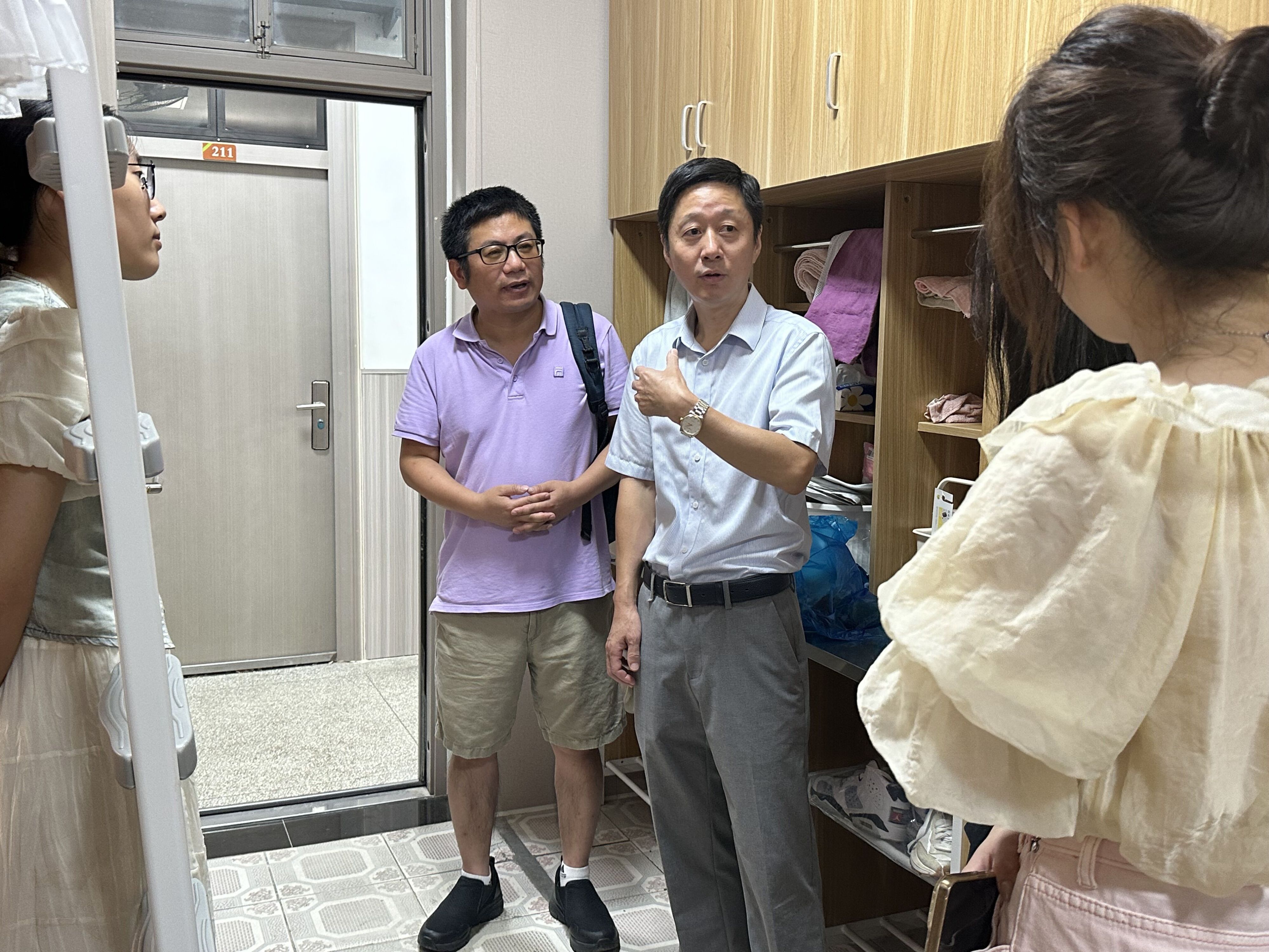 在寝室走访过程中,史宏协等老师对23级新生的到来表示热烈欢迎,详细了解新生入学的情况,并与同学们亲切交谈,询问大家初入校园遇到的问题,以及对专业的了解程度,鼓励大家勤奋学习,养成良好的学习习惯,营造良好的寝室文化氛围,度过充实、幸福的大学生活。班主任徐挺老师鼓励大家早日做好职业规划,合理安排自己的学习时间,以更加积极饱满的状态投入到大学的学习生活中。