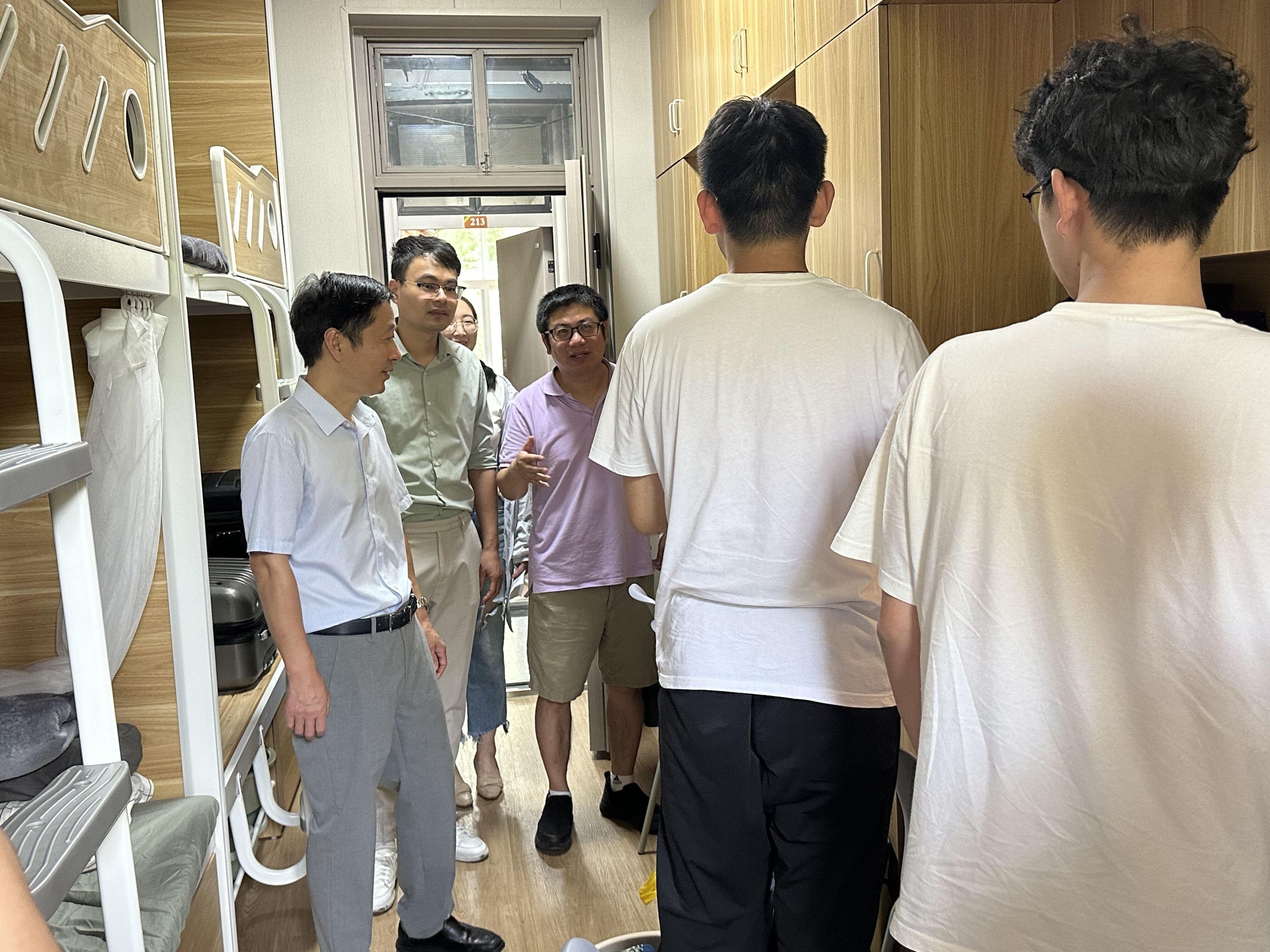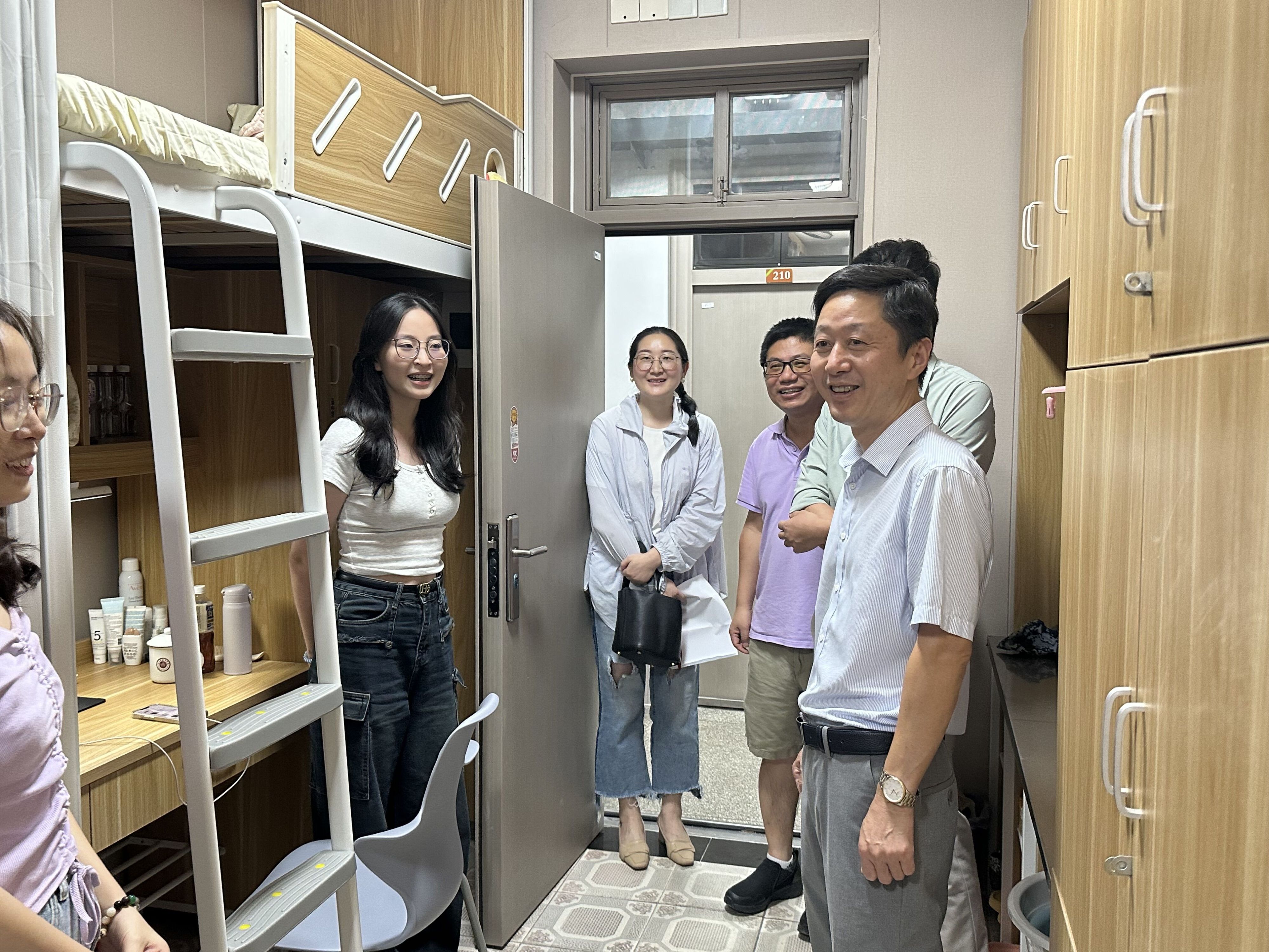 为深入了解新生开学报到情况及生活状态,加强学生寝室安全管理工作,9月1日下午,糖心视频党委书记史宏协、23级工商管理(中加学分互认)班班主任徐挺老师与学工办辅导员老师深入23级新生寝室,与同学们进行亲切交流。