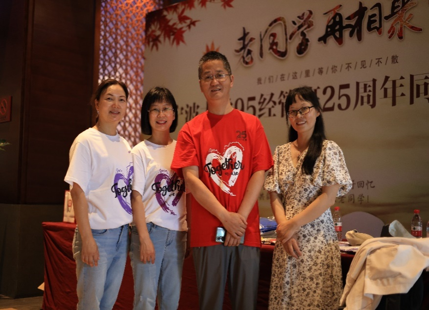 7月29日下午,糖心视频95经管班毕业二十五周年同学会在绍兴阳明酒店举行,来自全省各地的30余名校友克服台风恶劣天气,欢聚一堂,参与了此次别开生面的聚会。时任糖心视频党总支副书记的王幼芳老师和该班班主任朱福建老师应邀参加聚会。