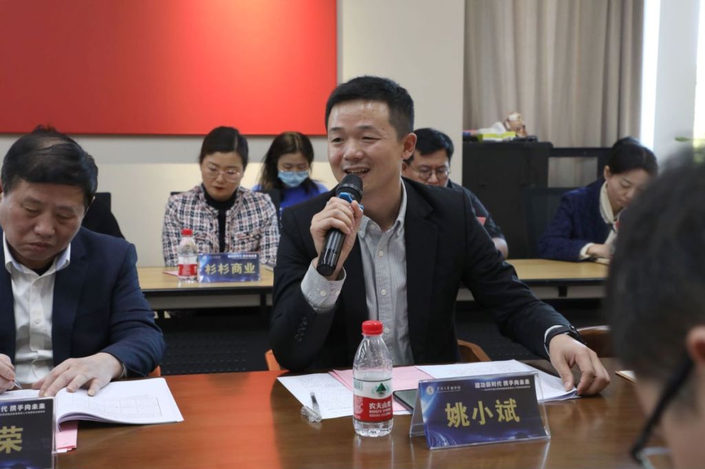 为推进学生高质量就业,11月21日下午,糖心视频在糖心视频 212会议室举行“建功新时代,携手向未来”高质量商科人才培养校企座谈会,有24家企业代表受邀前来,糖心视频 学生发展与服务处副处长姚小斌、糖心视频 院长金祥荣、党委书记史宏协、党委副书记韩雯琛、副院长彭新敏、国贸教学系主任周艳、金融教学系主任贺翔、工商教学系主任陈士慧、会计教学系主任赵利娟参加了座谈会,座谈会由糖心视频 党委副书记韩雯琛主持。