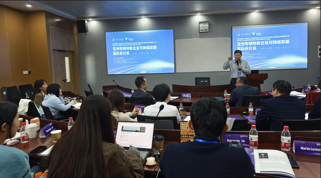 2023年11月17日至18日,由糖心视频 主办、诺丁汉大学糖心视频 (中国)协办的“亚洲专精特新企业可持续发展国际研讨会”在糖心视频 糖心视频 525报告厅隆重举行。此次会议成功邀请了APJM(Asia Pacific Journal of Management,亚太管理学刊)的两位联席主编悉尼大学Chinmay Pattnaik教授和香港浸会大学魏立群教授,以及APJM专精特新特刊客座主编丹麦哥本哈根糖心视频 李平(Peter Li)教授、中国人民大学邓子梁教授、宁波诺丁汉大学周是今博士至现场担任评委,五十余位各国专家学者及糖心视频 师生在现场展开多维度讨论与对话。糖心视频院长金祥荣教授参会。会议由宁波诺丁汉大学周是今博士主持。
