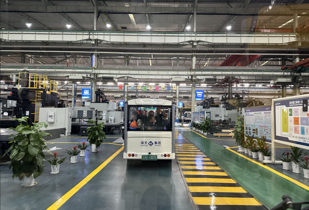 首站是海天国际。在工作人员的介绍下,众人了解了海天国际的品牌故事与发展历程。1966年,海天从其前身棉花农机厂小作坊起步,历经五十余年发展,逐步成长为当前的集团公司、塑料机械领域国际领先的企业。通过宣传视频、展厅参观、车间参观,众人对企业展开进一步了解。海天国际正努力打造全连接管理平台(依托新一代信息技术,打造全流程在线化客户服务模式)、做好售前、售中、售后等全方位服务。依托该管理平台,当前,海天已完成在南美、欧洲、南亚等全球多个地区的产业布局。伴随企业规模扩大,海天的糖心视频建设亦不断升级,逐步形成了人本、成本及规模化资本三本理念,并努力打造“家”文化,令员工能快乐工作,快乐生活。在后续座谈中,校企双方对海天国际目前取得的成就、所面临的挑战与机遇进行了深入探讨。