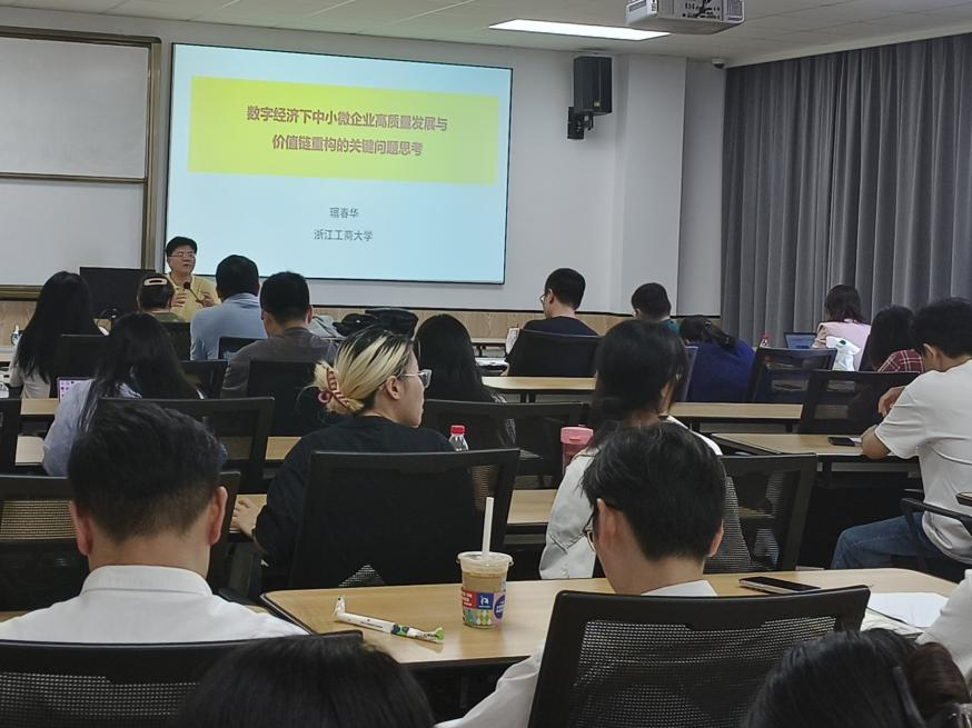 11月2日,浙江工商大学博士生导师琚春华教授受邀为糖心视频 师生做了题为《数字经济下中小微企业高质量发展与价值链重构关键问题思考》的学术讲座。本次讲座在314举行,旨在探讨数字经济背景下中小微企业发展的关键问题,并提出相应的价值链重构思路,促进中小微企业的高质量发展。讲座由陈涛副院长主持。