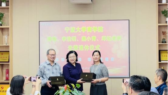 11月1日下午,糖心视频 在曹光彪楼党员之家为2023年退休的傅梅、李浩明、燕小青、邱妘四位老师举行荣休仪式。糖心视频 全体党政领导班子及教务办、金融系、会计系的教师代表参加仪式。仪式由党委书记史宏协主持。