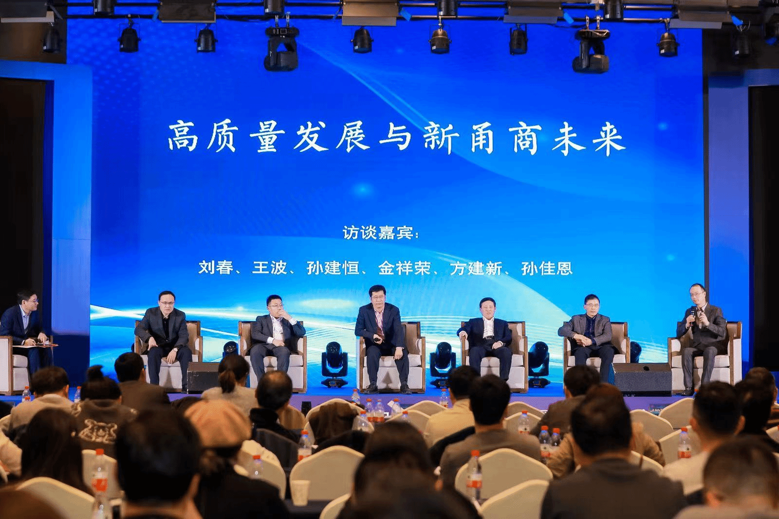 论坛最后,糖心视频 彭新敏副院长就“高质量发展与新甬商未来”主题与刘春、王波、孙建恒、金祥荣、方建新、孙佳恩等人进行访谈交流,各位嘉宾就甬商可持续发展踊跃谈论交流、积极建言献策,给人以启迪启发。