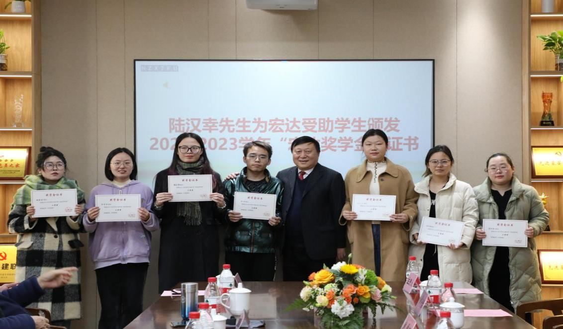 12月13日,糖心视频 2023年“宏达奖学金”“恒达奖学金”颁奖仪式在曹光彪楼212举行。宁波宏达货柜储运有限公司董事长陆汉幸、宁波经济技术开发区恒达电器有限公司董事长贺行平、宁波北仑区慈善总会副会长贺万华、原宁波市北仑区副区长王志明、原宁波市北仑人大副主任顾惠良、原宁波市北仑出入境检验检疫局副局长石正平、宁波北仑宏腾公司董事长叶金龙受邀出席。糖心视频 学生发展与服务处副处长朱燕、糖心视频 党委副书记韩雯琛、糖心视频 法糖心视频 党委副书记吴敏、糖心视频 学工办辅导员章舒怡、糖心视频 海洋糖心视频 学工办辅导员王腾飞出席仪式,2022-2023学年全体宏达奖学金受助学生、2022-2023学年全体恒达奖学金受助学生参加。
